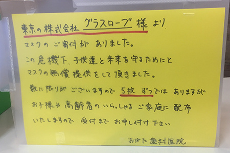 大変な中、沢山のマスクを頂きまして本当に感謝しております。
