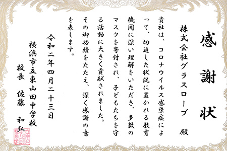 このたびは、本校の子どもたちのために貴重なマスクをたくさん頂戴いたしまして、誠に有難うございます。